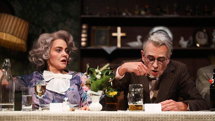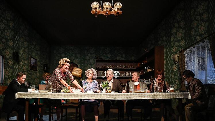 Oh, geschmunzelt werden darf viel in der ersten Coburger Inszenierung der Kleinbürger-Satire durch Schauspielchef Matthias Straub, die im Prinzip aber durchaus übertragbar ist auf die anderen gesellschaftlichen Schichten. Straub und sein Bühnenbildner Till Kuhnert belassen die Szenerie im Ursprünglichen, verschonen uns mit die Vorstellung nur einschränkenden "Aktualisierungen". Die Premiere im vollen Haus, in Anwesenheit des Autors, wurde mit anhaltendem Applaus bedacht.