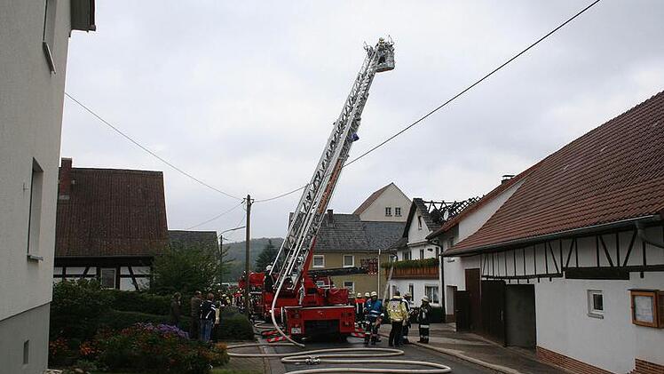 Es bemerkten sie den starken Rauch, wenig später brannte der Dachstuhl ihres Hauses lichterloh. Kurz nach 12 Uhr alarmierten die erschrockenen Bewohner die Feuerwehr. Die Einsatzkräfte hatten das Feuer nach einiger Zeit unter Kontrolle, doch brannte der Dachstuhl aus. Glücklicherweise kam weder bei der Familie noch bei der Feuerwehr jemand zu Schaden. Die genaue Brandursache stand gestern Mittag noch nicht fest. Die Untersuchung der Polizei ist noch im Gange. Die Schadenssumme beträgt nach einer ersten Schätzung 150 000 bis 200 000 Euro. Die Feuerwehrkräfte aus dem Stadtgebiet Bad Rodach und dem Landkreis Coburg wurden von Brandschützern aus dem thüringischen Heldburg unterstützt.