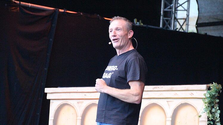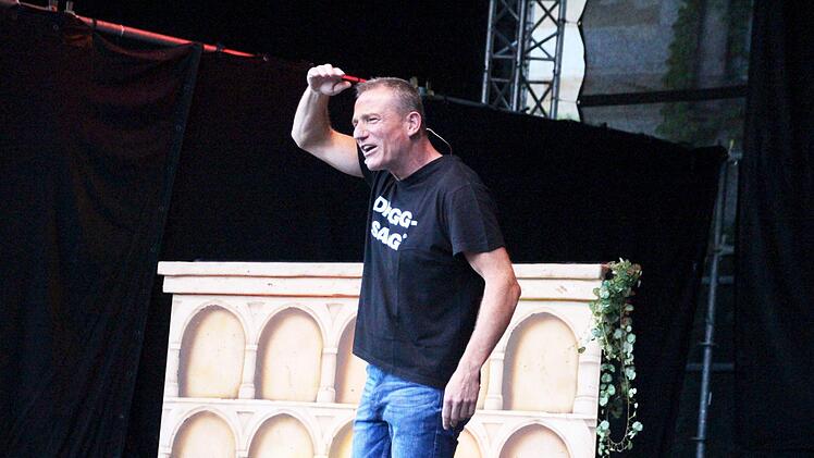 Das fränkische Selbstbewusstsein allerdings bedarf, weil es noch recht jung ist, der permanenten Pflege; deshalb kommen sie zu Tausenden zu Michl Müller, auch wenn eine Reihe von Witzen und Geschichtla schon Jahre alt sind. Jedenfalls war beim Tambacher Sommer die fränkische Bude, in diesem Fall der Schlosshof, schon wieder rappelvoll, was lange im Vorfeld abzusehen war, weshalb die Veranstaltungsagentur Friedrich für tags drauf gleich noch einen Termin angesetzt hatte.