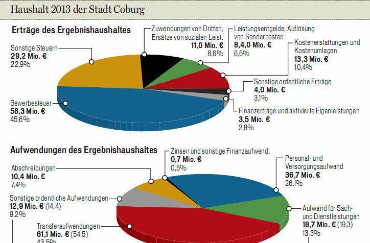 Doch das bedeutet nicht, dass die Stadt bei ihren Ausgaben elf Millionen Euro eingespart hätte: Sie wird - allen Prognosen zufolge - 2013 auch mehr einnehmen, vor allem bei der Gewerbesteuer. Während die Einnahmen gegenüber dem Vorjahr um rund 15 Millionen Euro steigen, gehen die Ausgaben um rund vier Millionen Euro nach oben.