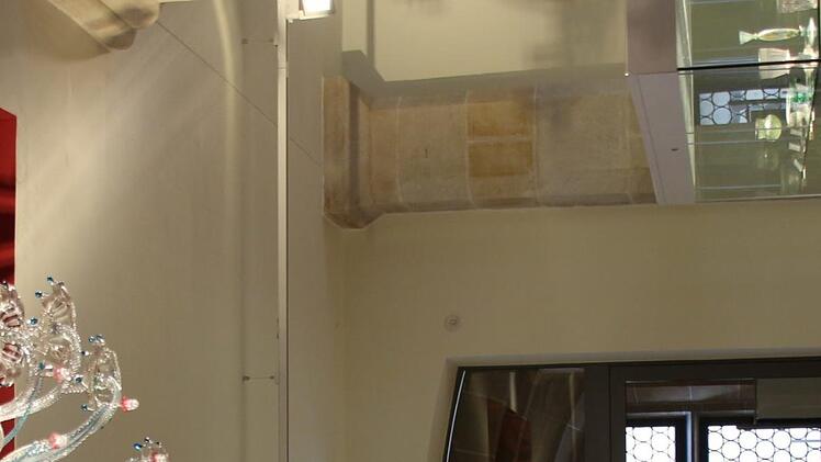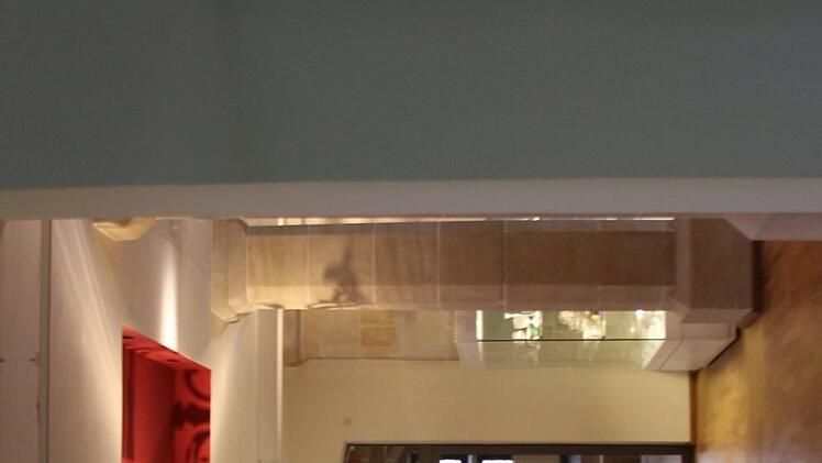 Also, so schnell wird in Zukunft keiner mehr hier durchrennen. Der eindrucksvolle, harmonisch wirkende neue Säulensaal entstand, weil Seitenkammern aufgelöst wurden. Die schönen Pfeiler steckten tatsächlich in Verkleidungen. Die Architektur an dieser Stelle der Veste neu zu erleben, ist eines der Anliegen dieses Umbaus. Auch wenn die Fenster verdunkelt werden, damit man das durchsichtige, dann effektvoll beleuchtete Glas intensiver wahrnimmt, wird die Raumsituation eine völlig andere sein.