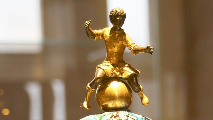 So wie dieser Kronleuchter aus Murano, wohl vom Anfang des 19. Jahrhunderts, ins Auge und Bewusstsein fällt, so sollen in Zukunft einige zentrale Kunstwerke aus der etwa 1000 Objekte umfassenden Sammlung von Herzog Alfred (geboren 1844 auf Windsor Castle, gestorben 1900 auf Schloss Rosenau) inszeniert werden. "Die Gläser erzählen spannende Geschichten. Die Leute sollen das erfahren und genießen können", sagt Sven Hauschke, der für das Glas in den Kunstsammlungen zuständige Kurator. Dafür wurden 17 zusätzliche Vitrinen angeschafft, riesige für die Darstellung eines historischen Büffets, und einzelne Glassäulen, um etwa die einzigartige große Achatschale aus Venedig Anfang des 16. Jahrhunderts zu präsentieren. Oder für die erstaunliche Milliefiori-Kugel aus dem 16. Jahrhundert mit der auf ihr balancierenden Mohrenfigur.