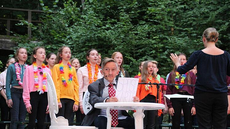 Die musikalische Leiterin Claudia Habram ließ mit ihrem gut einstudierten Chor den Witz der beschwingten Songs schnell auf die Zuschauer überspringen. Erik Konietzko begleitete zuverlässig und präsent am E-Piano.