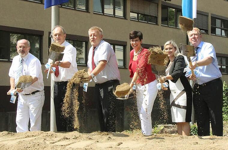 Obwohl es bei Sonne und gefühlten 35 Grad nicht gerade nach Regen aussah, wird in Coburg weiter am Hochwasserschutz gearbeitet. Hinter der Heilig-Kreuz-Schule und der Raststraßenbrücke, dem Ort der zukünftigen Baustelle, fand am gestrigen Freitag der Spatenstich für den zweiten Bauabschnitt statt.