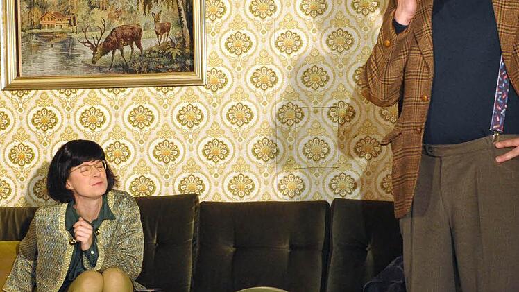 Kollektion der Scheußlichkeiten Dazu führt das Bühnenbild mit lustvoller Ironie vor, wozu der Mode- und Einrichtungsgeschmack zu "Klimbim"-Zeiten fähig war - scheußliche Tapeten und wunderbar hässliche Pullover inklusive. Und von der Wohnzimmerwand grüßt ein faszinierend kitschiges Waldidyll samt Hirsch. Die Ausstattung: eine reichhaltige Kollektion der Scheußlichkeiten, die wohl nur noch auf ausgesuchten Flohmärkten zu entdecken sein dürften.