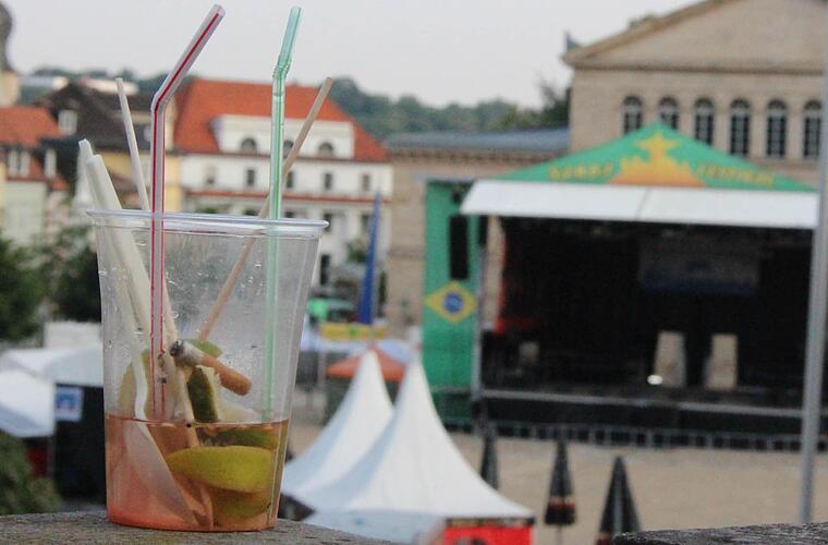 Doch heute ist's ruhig. Hoffmann und Niermann fahren runter zum Josiasgarten, Kornherr und Oppel grasen die Wiese rund ums Reiterdenkmal ab. An den Arkaden hat eine älter Frau ein paar stabile Cocktailbecher gefunden und sammelt sie ein. "Haben Sie sowas schon mal gesehen?", sagt sie entrüstet. Nun ja, das Samba-Festival gibt es schon seit über 20 Jahren ... "Zu Zeiten des Herzogs hätte es das nicht gegeben", stellt sie klar. "Nun muss ich rüber zur Kirche."