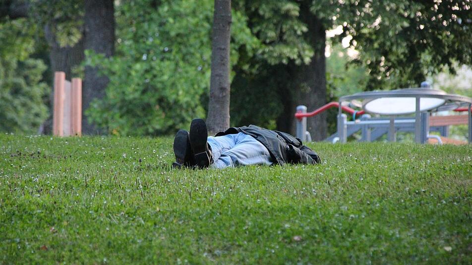 Das Geräusch des Transporters weckt den Mann auf, der sich in der Nähe des sogenannten blauen Spielplatzes ins Gras gelegt hat. "Weiter oben habe ich drei in Schlafsäcken gesehen", sagt Niermann gleichmütig. Wer schläft, sündigt nicht, macht keinen Müll und demoliert keine Spielgeräte.