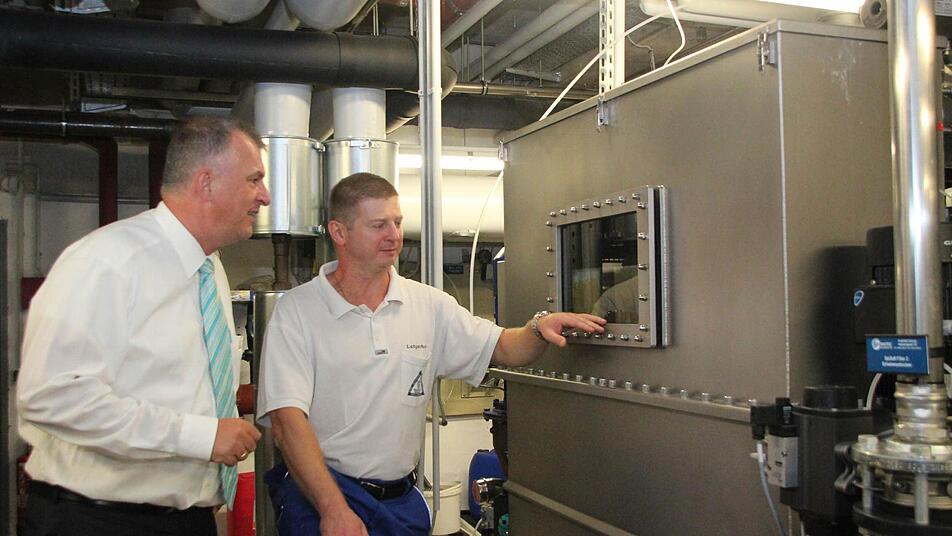 An der nächsten Station greift der 42-jährige Rödentaler sofort zu einem Touch-Stift und drückt damit auf einem Bildschirm herum, an dem Rohre, Becken und viele leuchtende Punkte zu sehen sind. "Die blinken alle rot, da die Anlage gerade außer Betrieb ist", sagt Latyschev. Momentan sieht seine Arbeitsalltag eher aus, wie der eines EDV-Technikers.