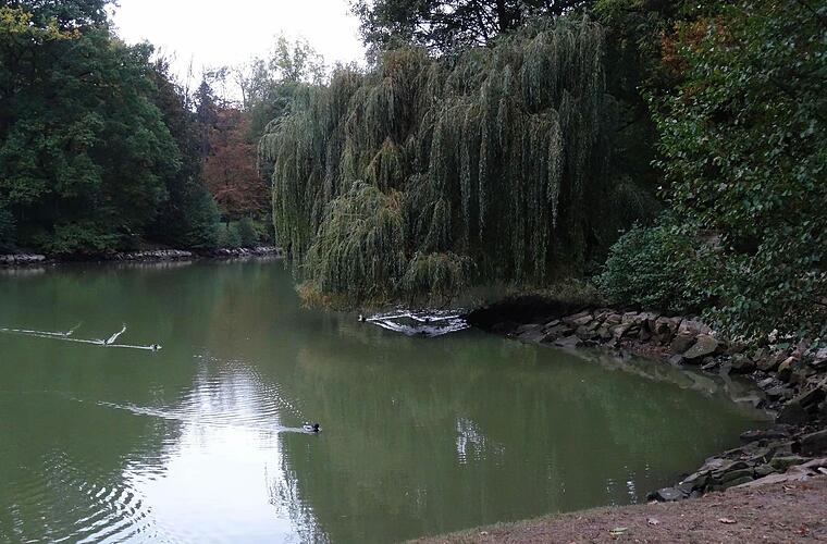 Zurzeit schwindet das Wasser im Schwanensee von Park Rosenau. Arbeiten am Ablassbauwerk machen es notwendig, den See einmal leer laufen zu lassen.