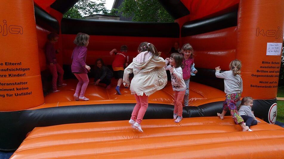 Auf dem Marktplatz und vor der Laurentiuskirche herrschte reges Treiben. Die Kinder und Jugendlichen feilschten auf dem Flohmarkt im Kirchhof mit Büchern und Spielsachen, tobten auf der beliebten Hüpfburg oder ließen sich schminken. Bei schönstem Wetter kam keine Langeweile auf. Die Erwachsenen lauschten dem zünftigen Spielen der Jugendblaskapelle Großwalbur mit ihrer Dirigentin Hella Klett und unterhielten sich angeregt. Die aufgestellten Bierbänke und Tische waren schnell besetzt. Auf der Marktstraße selbst standen Verkaufsstände, die ihre Waren anboten. Heimische Institutionen und Firmen hielten nicht nur Speisen und Getränke bereit, sondern es wurden auch Hand- und Bastelsachen sowie verschiedene Landmaschinen in Aktion vorgeführt. Die Zimmerei Büschel aus Großwalbur hatte zum Beispiel eine Leonardo-Brücke, die ohne einen einzigen Nagel gezimmert war, ausgestellt.