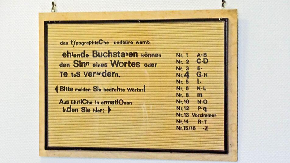 Offiziell eröffnet wird die Ausstellung erst am 24. Oktober, dem Tag der Bibliotheken. Passend zum Anlass wird die Coburger Autorengruppe Schreibsand eine Lesung gestalten, deren Texte auch um das Thema Buchstaben kreisen. Beginn: 19 Uhr, Eintritt frei. Zu sehen ist diese Schau bis zum 28. November.