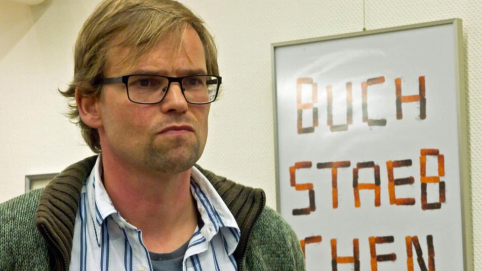 Der Coburger Grafik-Designer Oliver Heß präsentiert eine hintergründige Ausstellung in der Stadtbücherei. Alles dreht sich bei ihm um Buchstaben, die freilich ein unvermutetes Eigenleben entwickeln.