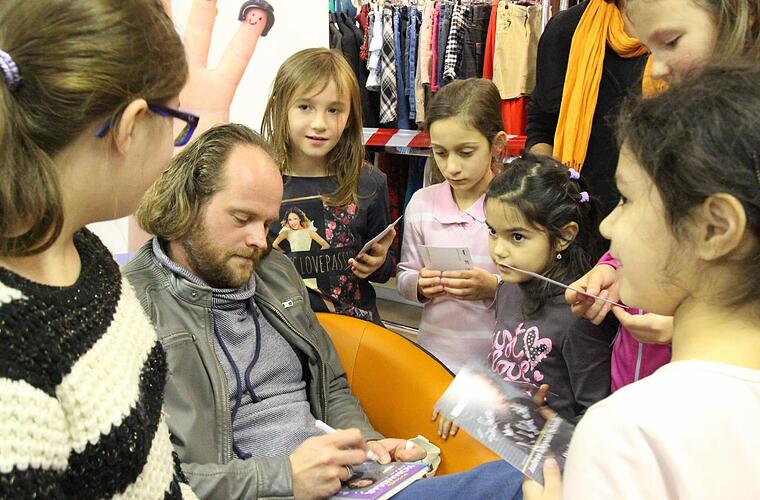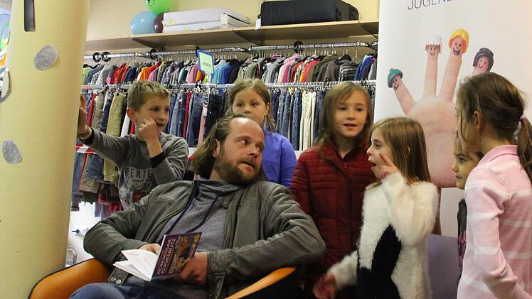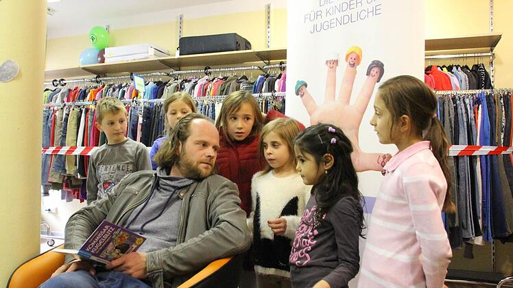 Der Schauspieler "mit der sozialen Ader", wie er es nennt, bot seine Unterstützung an, und so kam es zur Lesung zwischen all den Klamotten, Spielen und Babyaccessoires. Gespannt lauschten die Kinder der Geschichte - vorgetragen in sauberem Hochdeutsch.