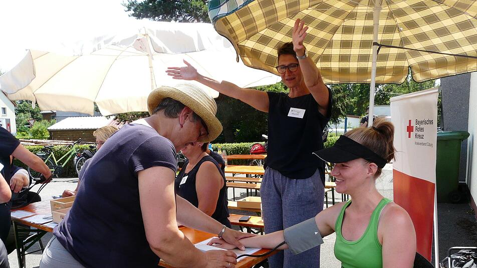 Nach der Registrierung der rund 280 Starter machten sich die Radfahrer, Läufer und Wanderer auf den Weg durch die Flur und die Dörfer von Meeder zum Ziel der Anna-B.-Eckstein-Schule. Obst, Getränke und Käseproben gab es an mehreren Stempelstellen. Unter anderen lud das Dorffest in Mirsdorf lud zum Verweilen ein. Neu führte die Strecke durch die Kastanienallee zur Kapelle in Moggenbrunn sowie zum Modellflugplatz des Aero Clubs. Der Blick ins Coburger Land und nach Thüringen war bei diesem herrlichen Sonnenschein besonders schön. Nach rund 30 zurückgelegten Kilometern war eine Stärkung und Erfrischung in Meeder angesagt. Die Bewirtung übernahmen einheimische Firmen und Vereine. Für die musikalische Unterhaltung sorgte die Band "The Real BBQ Connection". Auf dem Pausengelände der Grundschule saßen unter Sonnenschirmen nicht nur die Sportler, auch Gäste hatten sich eingefunden. Die Friedenssprüche wurden ausgewertet und die zehn besten von einer Jury ausgesucht. Daraus wird ein Gremium das Motto für das nächste große Friedensfest 2021 auswählen. Die Teilnehmer wurden mit kleinen Geschenken bedacht.