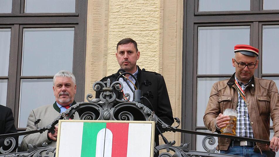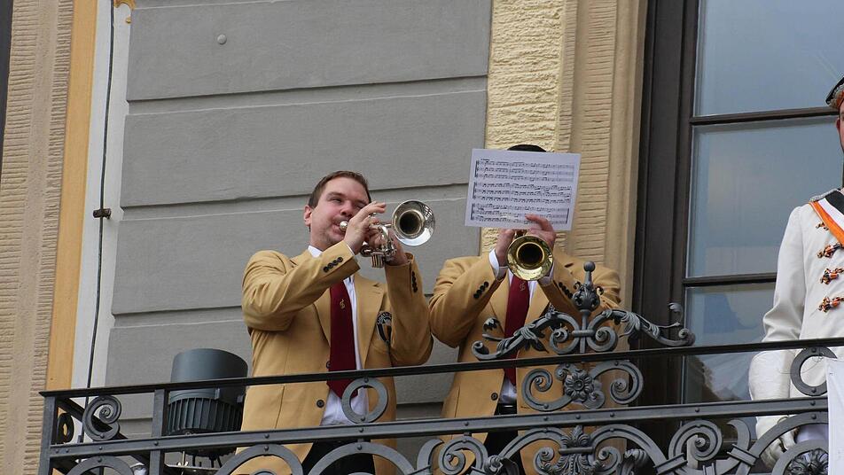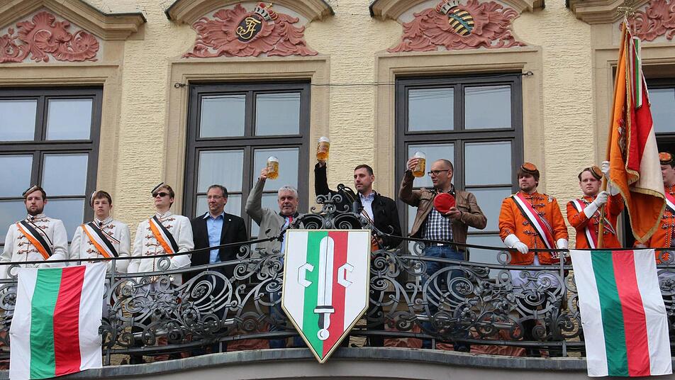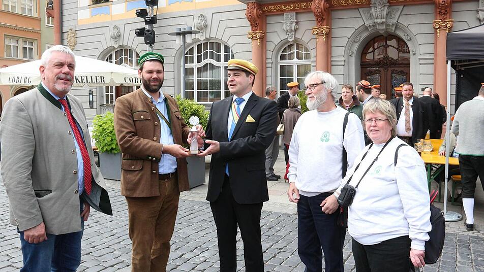 Der Regen hat sich verzogen, die Sonne strahlt pflichtgemäß vom leicht bewölkten Himmel: So gehört sich das am Pfingstdienstag in Coburg. Zumindest in den Augen derjenigen, die am Marktplatz feiern wollen.