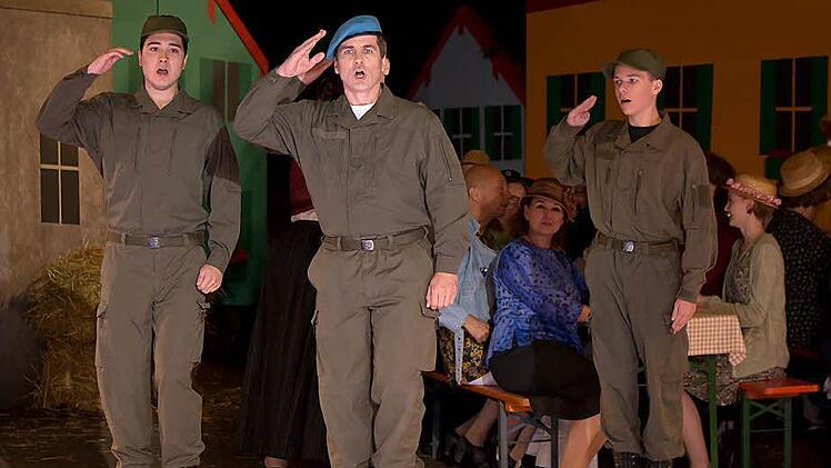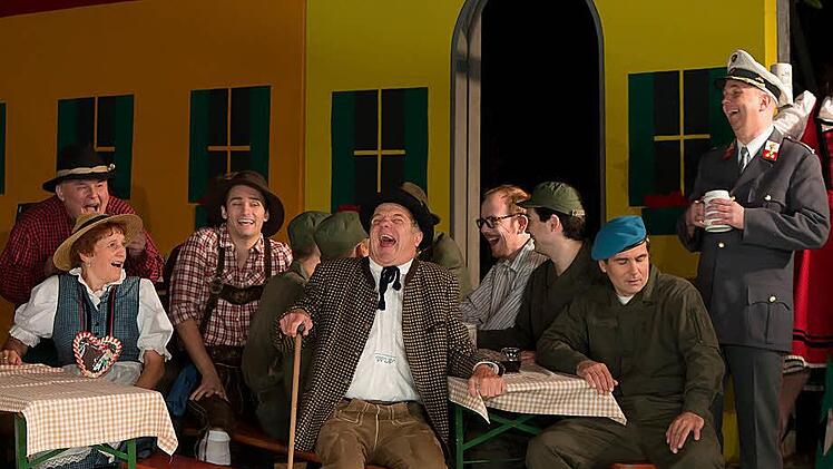 Oder auch der Vincenz (Harald Wurmsdobler, übrigens der Intendant der seit fünf Jahren agierenden Pramtaler Sommeroperette). Er folgt nicht seinem Vater, dem Holzfabrikanten Lindoberer, sondern wird Soldat, Blauhelm. Mission: Frieden bringen für Palästina.