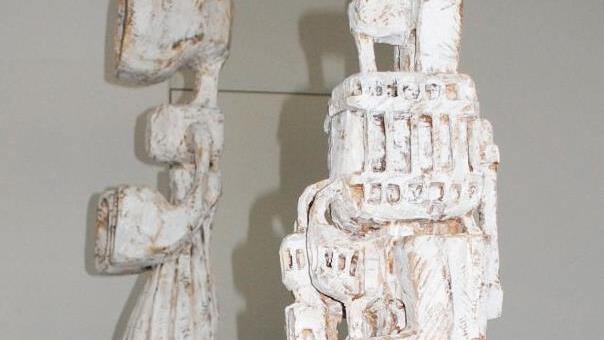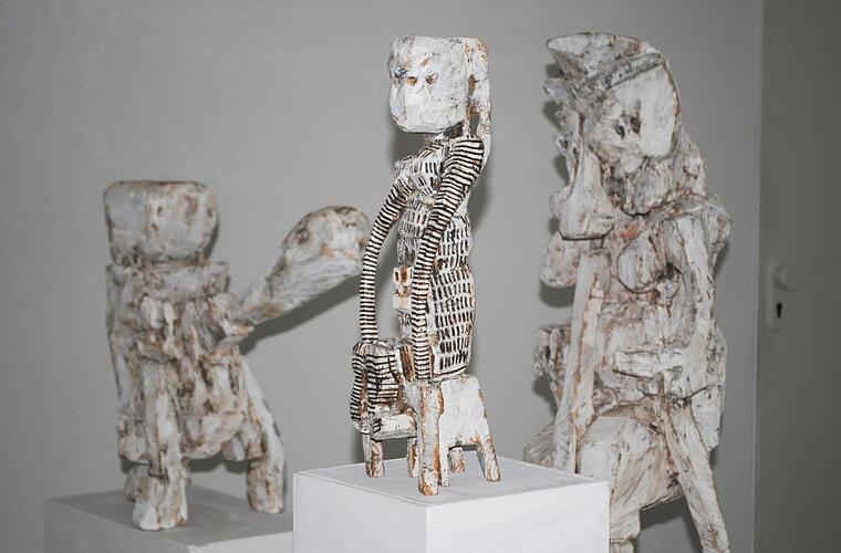 Entsprechend kommen Klaus Hacks Figuren daher, mit quadratischen Köpfen und Gliedmaßen an merkwürdigen Stellen. Alle Skulpturen sind mit weißer Farbe überzogen, aber nicht flächendeckend, so dass der plastische, lebendige Charakter seiner Schöpfungen noch hervorgehoben wird. Zu den 30 Skulpturen zeigt Hack im Kunstverein auch etwa 25 Holzschnitte und Zeichnungen. (Bis 20. August)