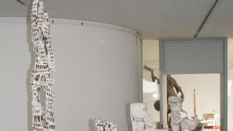 Im Parterre des Coburger Kunstvereines geht es hoch hinaus, zumindest in der Vorstellung, mit Klaus Hacks babylonischen Türmen.