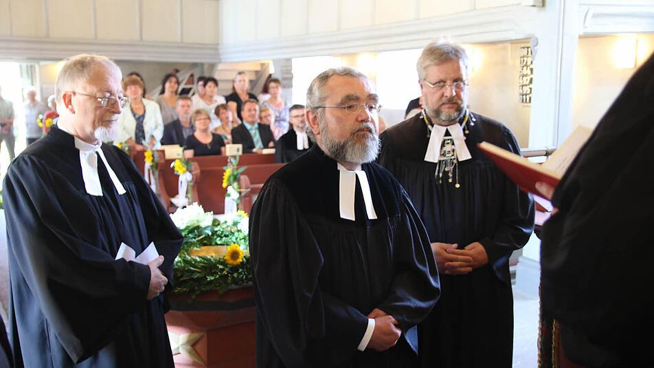 Feierlich zog die Festgesellschaft zusammen mit Dekan Christoph Liebst, dem Kirchenvorstand und den Geistlichen in die mit Sonnenblumen geschmückte Kirche in Großheirath ein. Wo ihr ehemaliger Pfarrer nun arbeitet, dafür interessierten sich die Vertreter aus dem Dekanat Uffenheim in Mittelfranken (Landkreis Neustadt/Aisch-Bad Windsheim), wo Pfarrer Leikert in der Kirchengemeinde Herrnberchtheim mit Oberickelsheim und Unterickelsheim 27 Jahre lang als Geistlicher gewirkt hatte.