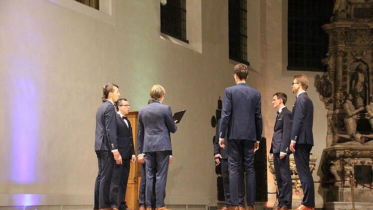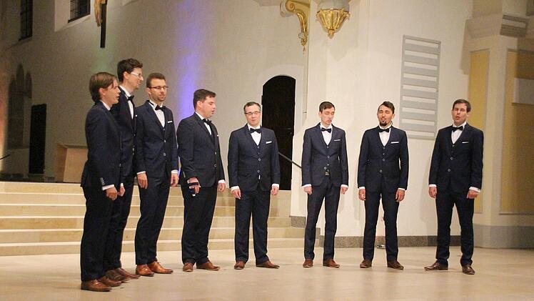 "Der Töne Licht" war dieses Programm überschrieben, das die Octavians, selbst ein bisschen ehrfürchtig, in Coburg zum letzten Mal sangen. Ihre CD zum zehnjährigen Bestehen belegt, dass sie durchaus auch auf anderen Pfaden, originell kickboxend und spaßend, unterwegs waren. Doch der frühere Kirchengesang, der Klang der Mönche, unserer Zeit dann näher kommend die Tradition der feinen Männerchöre scheint sie langfristig stärker in den Bann zu ziehen. Und wahrscheinlich auch ihr Publikum. In der Mischung und deren Grundton liegt die Einmaligkeit der Octavians.