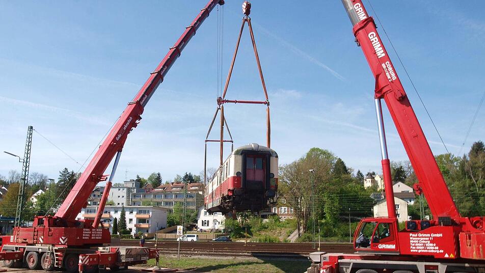 Werner Krautheimer und Matthias Bellenberg zeigen am Donnerstagvormittag Fingerspitzengefühl: Die beiden Kranwagenfahrer haben den 50 Tonnen schweren historischen Panoramawaggon der TEE-Züge aus den 60er Jahren am Haken. Es ist 10 Uhr und auf der alten Laderampe haben sich einige Dutzend Schaulustige versammelt - professionelle Fotografen und Kameraleute, aber auch einige Bilderjäger, die vom Virus "Eisenbahn und Modelleisenbahn" infiziert sind. So wie Hans-Jörg Böhm, der aus dem 50 Kilometer entfernten Neuhaus am Rennweg nach Coburg gekommen ist. Daneben sind Mitarbeiter aus der Stadtverwaltung gekommen, allen voran Oberbürgermeister Norbert Tessmer (SPD) und Zweite Bürgermeisterin Birgit Weber (CSU).