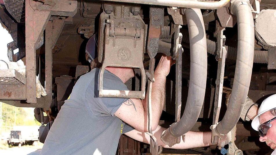 Langsam hieven Matthias Bellenberg und Werner Krautheimer den Eisenbahnwagen mit der augenfälligen Aussichtskuppel in die Höhe. Verbunden sind die beiden Kranführer zwar per Funk, aber die beiden Männer agieren in ihren Autokränen unabhängig von einander. "Da braucht man auch Erfahrung", lassen sie wissen. Unter den beiden Drehgestellen des 26 Meter langen Waggons hindurch führen die schweren Ketten, die wiederum mit Schwerlastbändern an den Kranhaken befestigt sind.