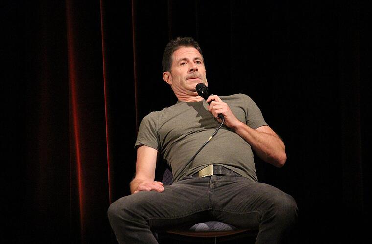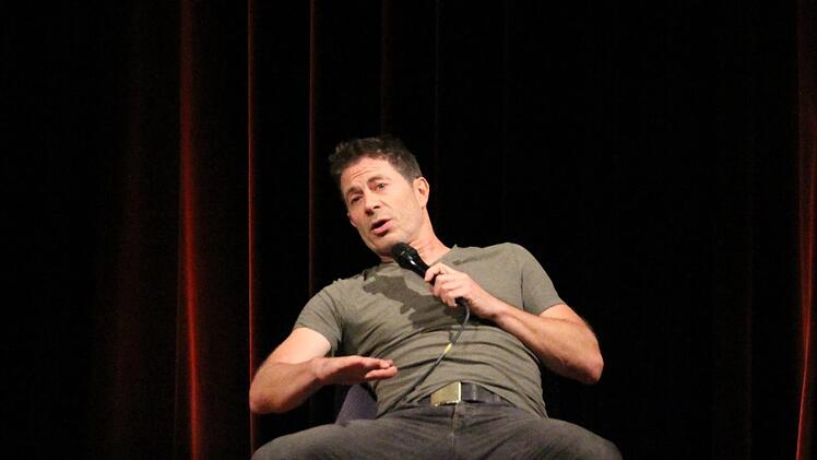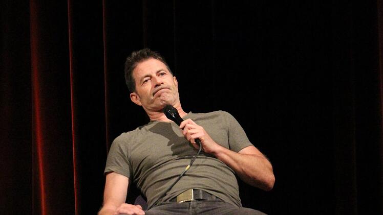 Probiert dieser Miller aus, wie weit er da gehen kann? Was er noch alles dahinstopseln kann, und die Leute folgen ihm widerstandslos lachend. Aber stopp, seine Behauptung, der Mensch an sich sei frauenfeindlich, wird mit ein bisschen amüsiertem Unmut bedacht.