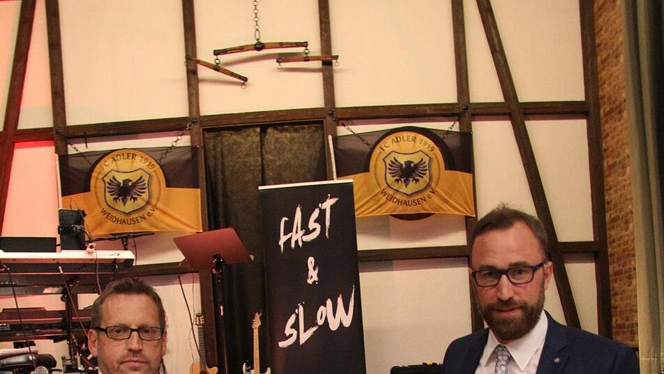 Auch wenn sich die Zeiten im Hinblick auf Werte und das Vereinswesen wandeln, lohne es sich, die Treue zu halten und sich einzubringen. Markus Mönch betonte, dass die Gemeinde Weidhausen reich an Vereinskultur sei, von ihr lebt und sie deshalb die Vereine unterstütze. Der Schirmherr ermutigte, an Bewährtem festzuhalten aber auch neue Wege zu gehen: "Ich bin zuversichtlich, dass der Adler auch weiterhin fliegt. Als Geschenk hatte Markus Mönch ein gerahmtes Plakat der Sportplatzeinweihung aus dem Jahr 1979 für das Sportheim dabei.