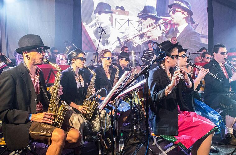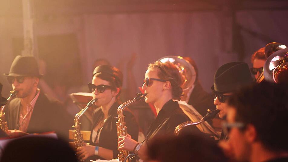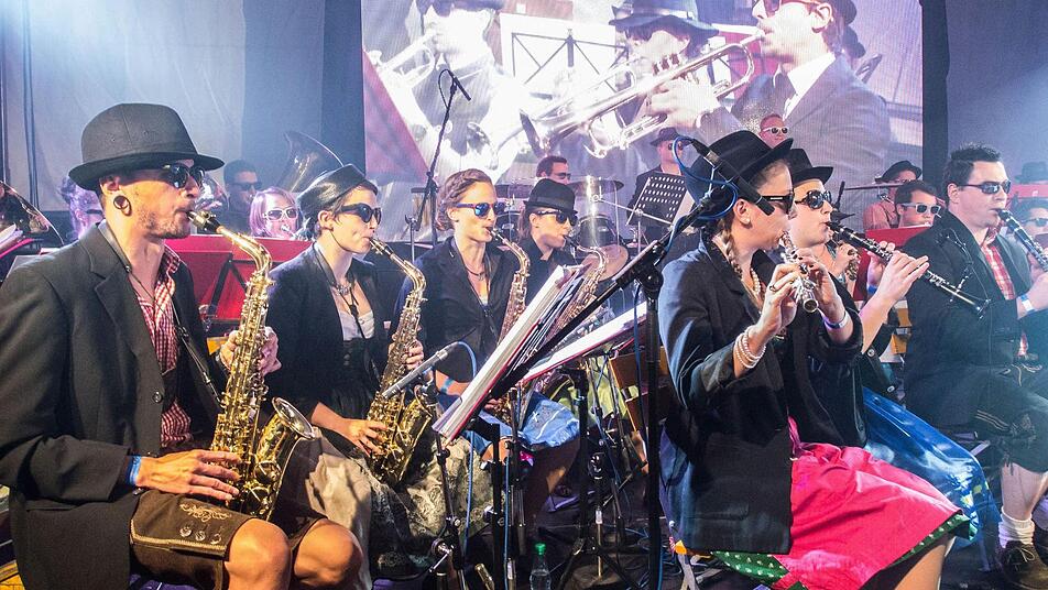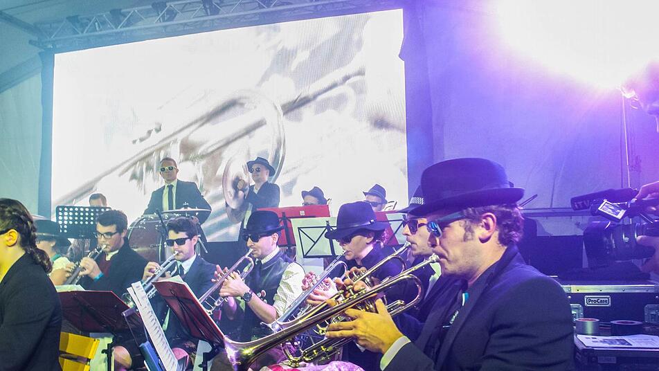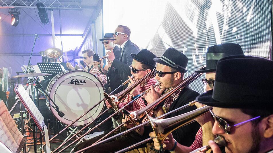Schwarze Jacken, schwarze Hüte, schwarze Sonnenbrillen - die Inszenierung passt perfekt zum Auftakt. Als Blues Brothers der Blasmusik eröffnen die Mitglieder "Original Prinz Albert Blasmusik" (OPA) das dritte Coburger "Oktopafest" auf dem Schlossplatz.