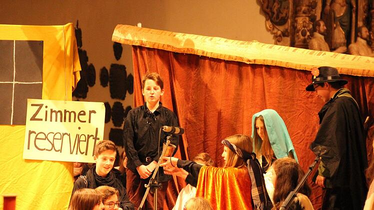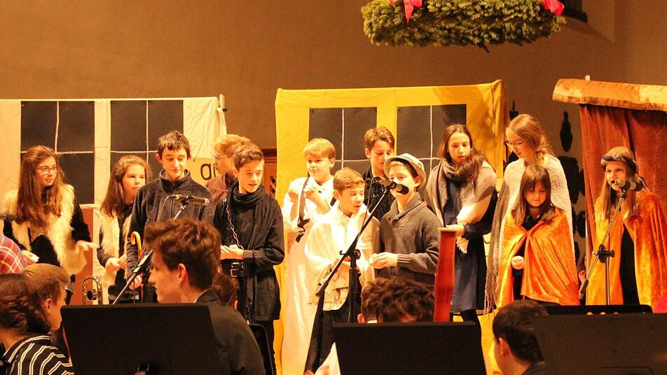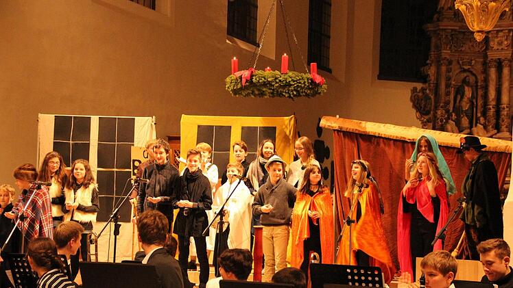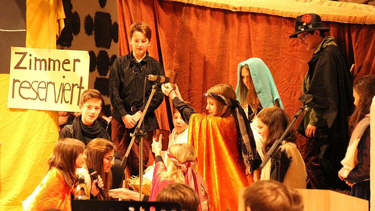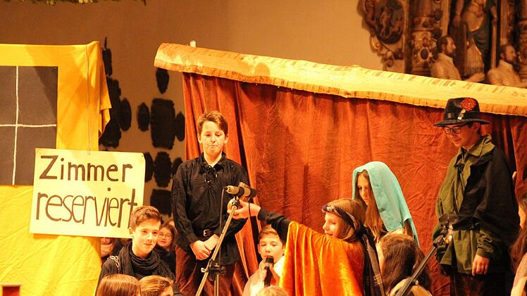 Die Hirten hatten auch zwei Schafe dabei, mit Fell auf dem Rücken durch St. Moriz krabbelnde Mädchen. Es gab zur casimirianischen Weihnachtsfeier heuer ein (fast) klassisches Krippenspiel der Siebtklässer, einstudiert von Tobias Narr, sprachlich angepasst ans Heute unter dem Titel "Micha und das Chaos im Stall".