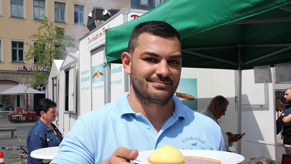 Die Bratwurst hatte am Mittwoch auf dem Markt freilich heftige Konkurrenz: Wegen der Anerkennung als kulinarisches Erbe gab es auch Kloß mit Soß oder Braten sowie Zwiebelkuchen. Beides fand viele spontane und begeisterte Abnehmer, trotz der Wärme. "Für mich ist das jetzt wie Sonntag", sagte zum Beispiel Christian Ott. "Als Coburger und Klößesser muss ich da zuschlagen."