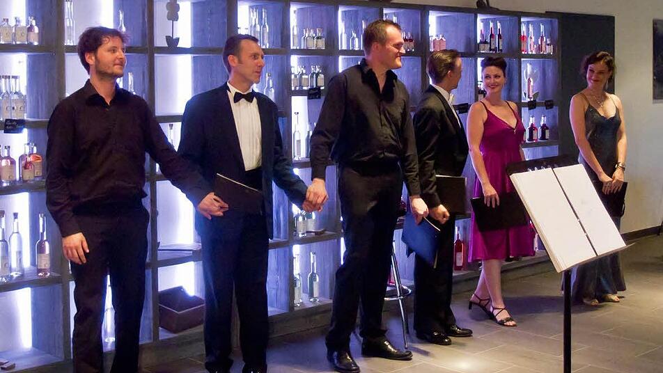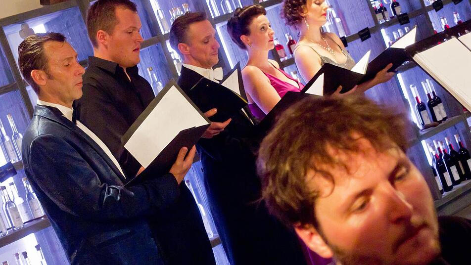 Der Name ist Programm - klangvolles Programm. Sie nennen sich "Die Nostalgiker" und genau das präsentieren sie mit ihrer Musik: Nostalgie. "Die Nostalgiker" - das sind Anna Gütter, Stefanie F. Schmitt, Dirk Mestmacher und Steffen Westphal als Vokalquartett und Dominik Treml am Klavier und Christian Ernst im Kontrabass als zweiköpfige Combo und allesamt am Landestheater Coburg engagiert.