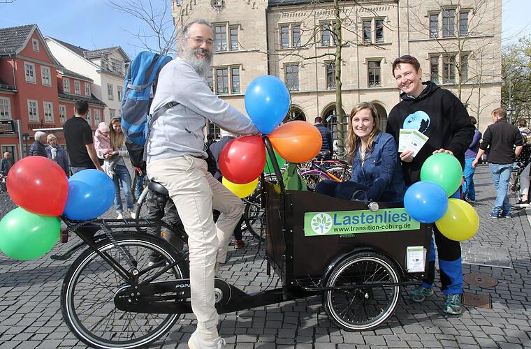 www.transition-coburg.de von jedem ausgeliehen werden, wer damit im Stadtgebiet Kartons oder andere Sachen umweltfreundlich transportieren will. Natürlich kann damit auch ein Kinderausflug organisiert werden, denn in den "Gepäckwagen" ist Platz genug und dieser ist mit rund 100 Kilogramm belastbar.