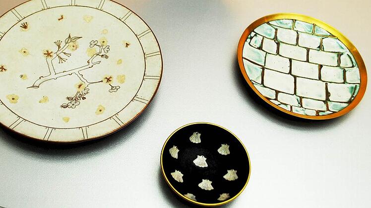 Mit dieser Ausstellung, die den wohltuenden Ruhe- und Gegenpol zur "lauten" und turbulenten Gille-Ausstellung im oberen Stockwerk bildet, setzt der Coburger Kunstverein seine jahrzehntelange Pflege der Emailkunst fort, wieder mit einer hochkarätigen Künstlerin.
