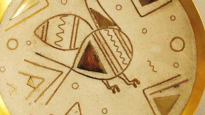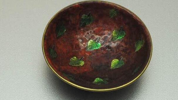 Ob Schmuck in eher zurückhaltender oder in kraftvoller Farbgebung, Vera-Marie von Claer-Crodel gewinnt dem schwierigen und von einem großen Spektrum der Zufälligkeit bestimmten Schmelzvorgängen nicht nur erstaunliche Farbintensität ab, sondern auch präziseste Formgebung. Sie zeichnet durchaus auch in Email. Und gerade die kleinen Schälchen mit winzigen klar gestalteten Blättchen in ihrer Oberfläche strahlen weit über ihre eigentliche Größe hinaus.
