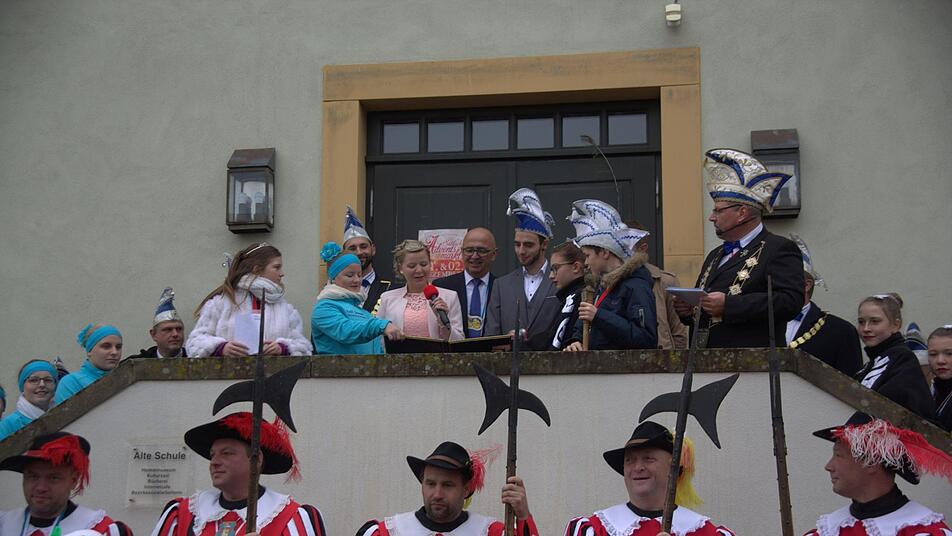"Was ist denn nur in Seßlach alles geschehen?", wunderte sich die neue Prinzessin. Vieles war neu an diesem Rathaussturm: Statt auf der angestammten Treppe des Verwaltungsgebäudes fand die Machtübernahme in diesem Jahr wegen dessen Sanierung vor der Alten Schule in der Luitpoldstraße statt. Dieses dient der Verwaltung derzeit als weiteres Ausweichquartier. Statt Bürgermeister Martin Mittag (CSU), der mittlerweile bekanntlich in den Bayerischen Landtag wechselte, übergab sein Stellvertreter Wolfgang Pfister als kommissarischer Rathauschef den großen Schlüssel. Kaum sei dieser im Amt, gebe er dieses schon wieder aus der Hand, kommentierte Marcel III.