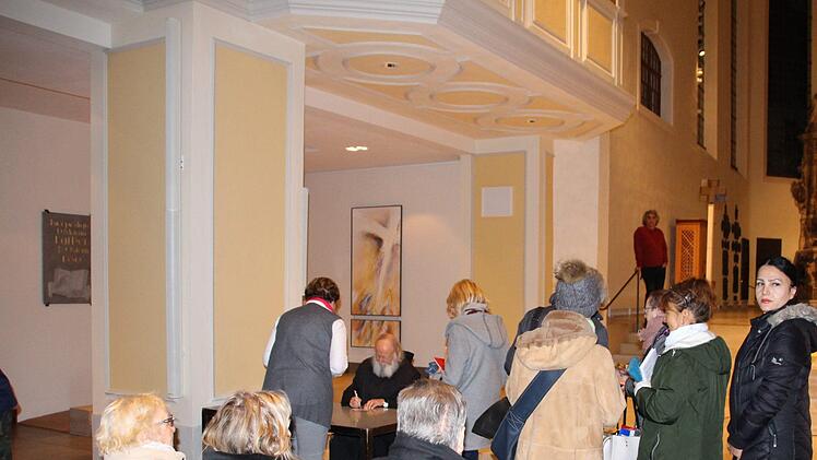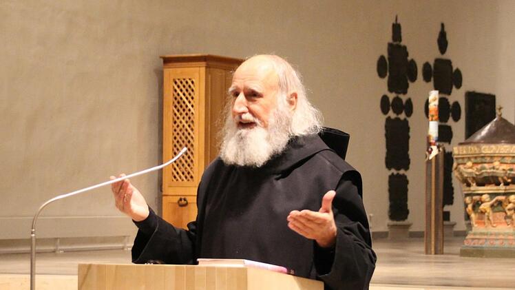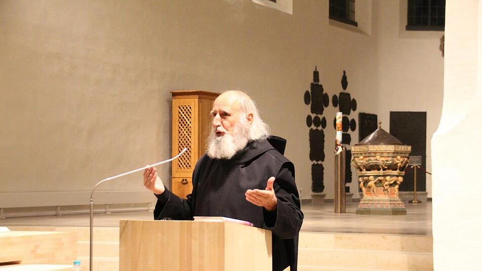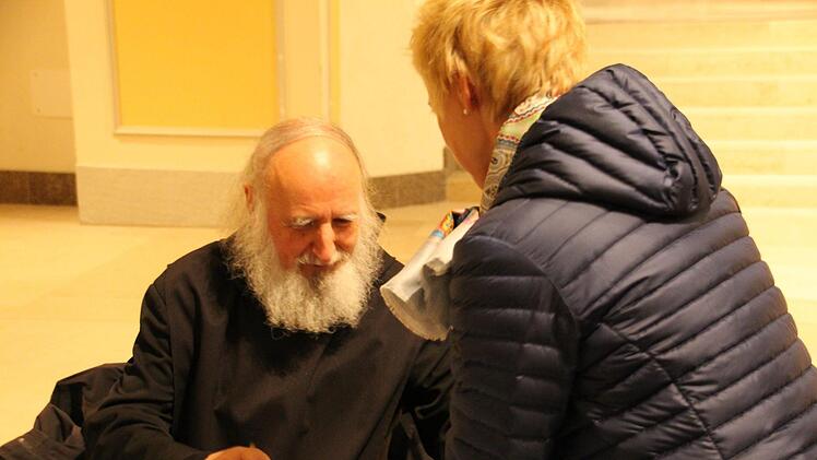 Um vom Theoretischen dann aber auch einen Anfangsschritt ins Praktische zu tun, zog Anselm Grün die große Zahl der Besucher in eine kleine Meditation, im Stehen mit gekreuzten Armen über der Brust. Er endete mit einem 1600 Jahre alten Gebet. "Sie müssen gar nicht daran glauben; wir sind getragen vom Glauben in diesen alten Worten."
