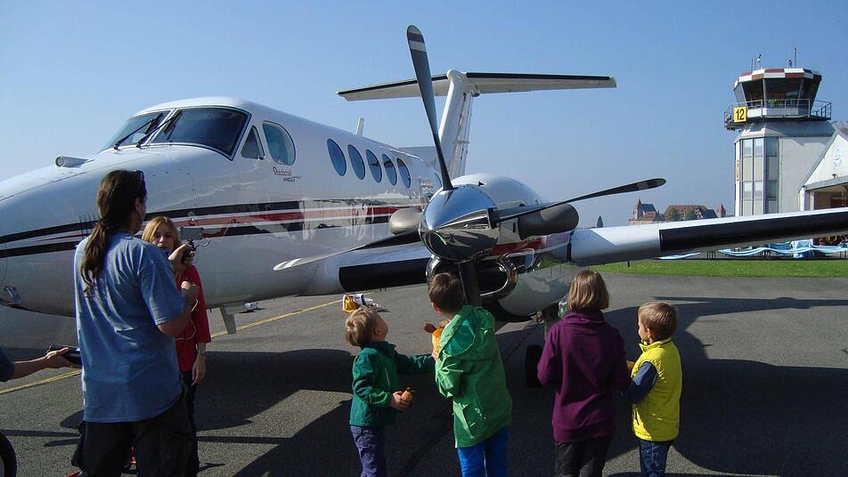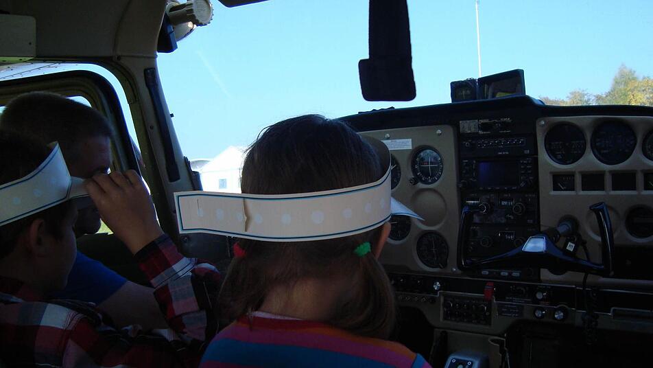 Auch strahlender Sonnenschein kann eine Veranstaltung ins Wanken bringen. Aber schnell wurde Abhilfe geschaffen und Christian Vohl, Chefpilot bei Brose, trat mit seiner Maschine ins Rampenlicht. Da gab es noch schnell ein paar Textänderungen von Autorin Vera Nolte und eine kleine Einweisung an die Kinder. Für die 10jährige Hanna und ihre Freunde war das gar kein Problem: " Ich bin jedes Wochenende hier mit meinem Papa am Flugplatz und wenn ich alt genug bin werde ich auch meinen Flugschein machen." Da schafft man es doch auch ganz locker den Propeller zu drehen.