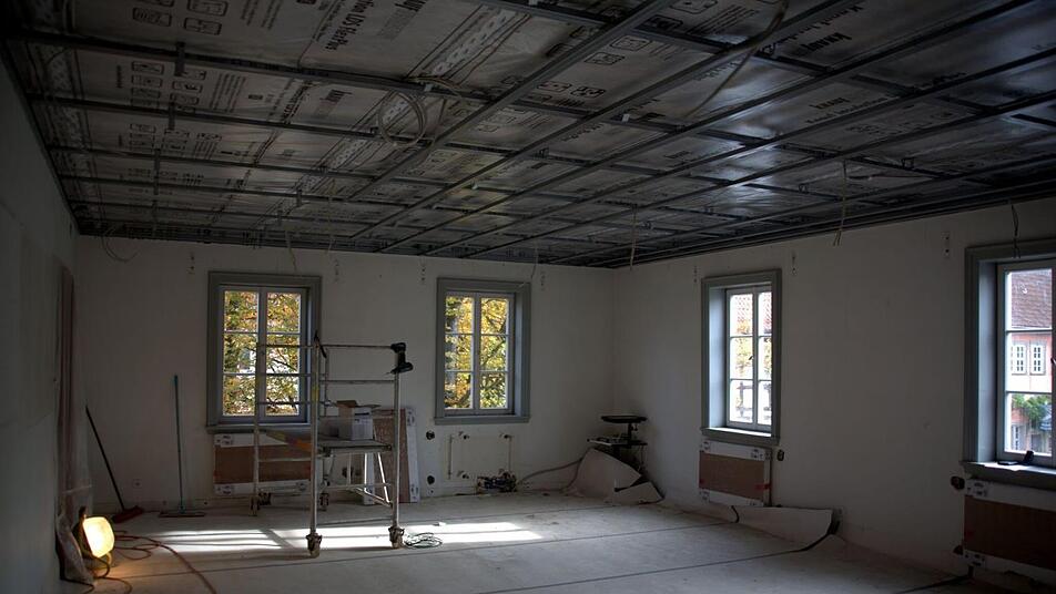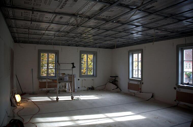 Noch vor der Weihnachtspause sollen die Dämmarbeiten abgeschlossen werden, die "Abschlussbeschichtung" soll Anfang 2019 folgen. Heizung und Elektro-Installationen seien bereits fertig. Als "Restgewerk" steht noch der Aufzug aus: Nach langem Ringen fand sich eine Zwischenlösung zwischen Plattform- und Kabinen-Aufzug. Es habe sich eine Schlosserei gefunden, die einen "schönen Schacht" neben die Treppe ins Obergeschoss setzen werde, kündigte die Architektin an. Den für den Aufzug notwendigen Glaskasten wird eine unauffällige Stahlkonstruktion tragen. Geller: "Von der Statik her ist das kein Problem, das Kellergewölbe hält das Gewicht aus."