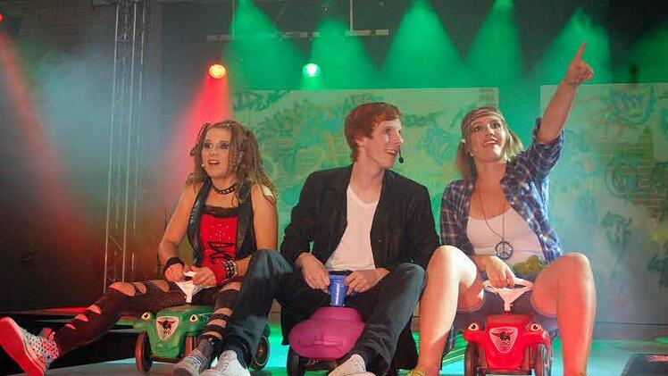 Es ist erstaunlich, was die Projektleiterin Stefanie Berg aus den CO II-Schülern herausholt."Die Schüler haben viel Zeit und überdurchschnittliches Engagement gezeigt", sagte Stefanie Berg und Rektor Klaus Reisenweber war mehr als stolz auf diese große emeinschaftsleitung. Über 200 Mitwirkende (vor und hinter der Bühne) entführten mit Tempo, Witz, Charme und Talent in die Zukunft auf den Planeten Ebay, wo die Rockmusik verboten wurde.