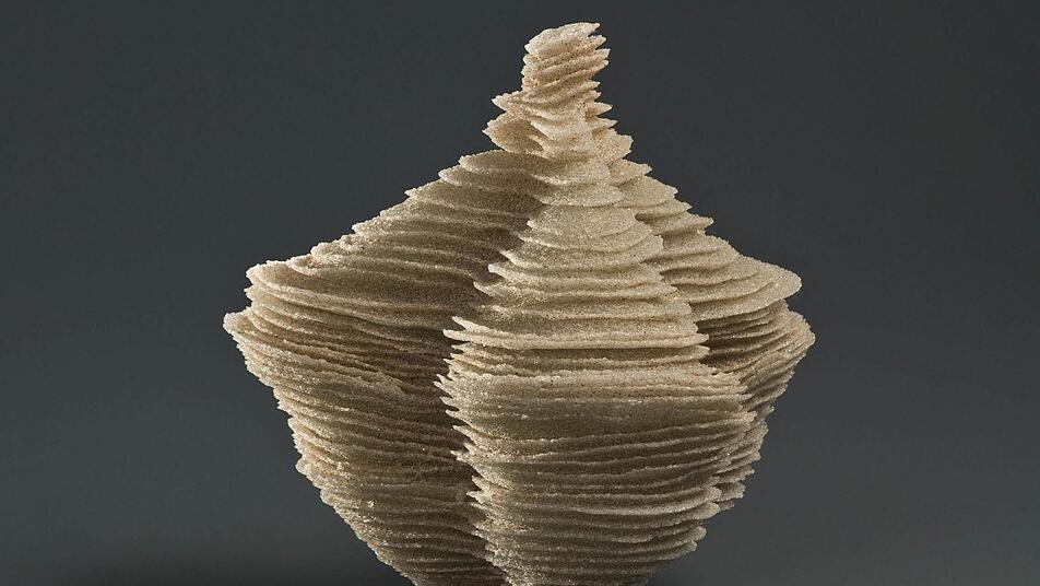 1. Preis an Karen Lise Krabbe Materialerkundungen ganz eigener, unverwechselbarer Art betreibt die dänische Künstlerin Karen Lise Krabbe, die den 1. Preis erhält. Im Sandgussverfahren und Pate de verre-Technik gestaltet sie Schicht für Schicht Objekte, die sich erst im geöffneten Zustand als Dosen zu erkennen geben.