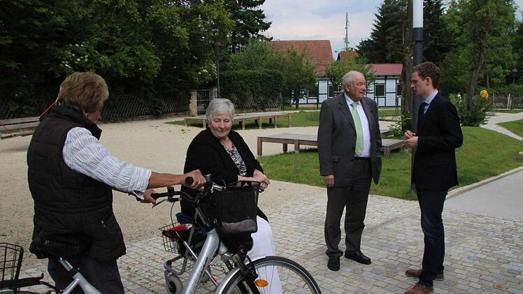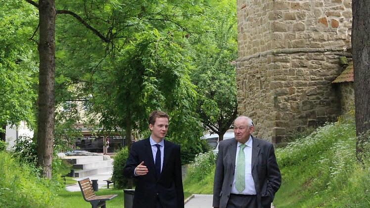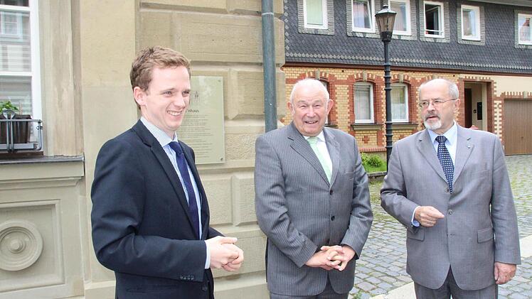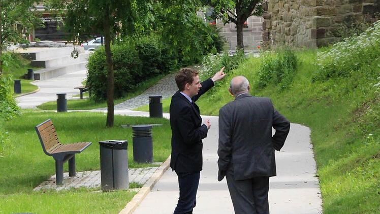 Also musste sich die Gruppe ohne den Schirmherrn des Lutherwegs auf den Weg nach Bad Rodach machen. Immerhin: Sie blieb trocken. Während in Bad Rodach ein Frühlingsschauer niederging, bekamen die rund 50 Wanderer kaum einen Tropfen ab und wurden schließlich am Bad Rodacher Wallgraben von Beckstein und Bürgermeister Tobias Ehrlicher (SPD) in Empfang genommen.