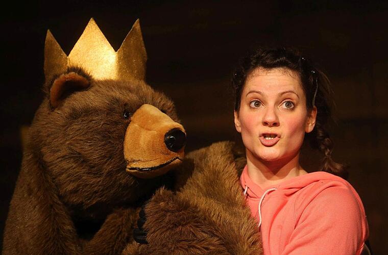 Mühelos wechselt Eva Marianne Berger dabei die Rollen, spielt Bär und Wolf, dazu noch die Köchin, die sich als böse Hexe erweist.