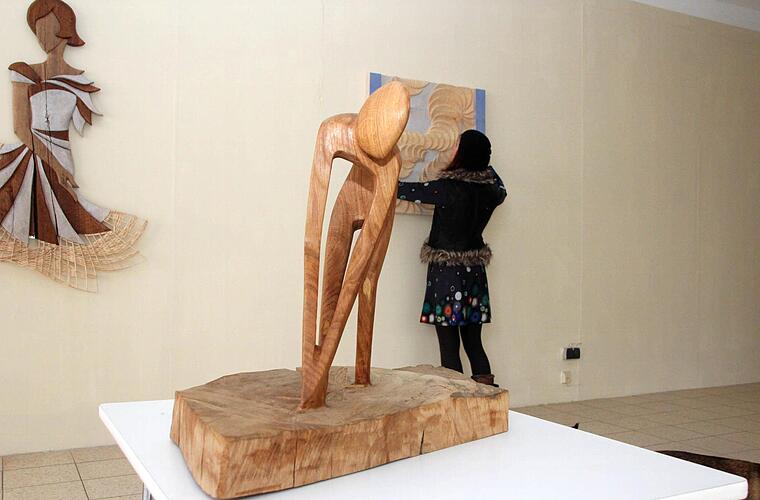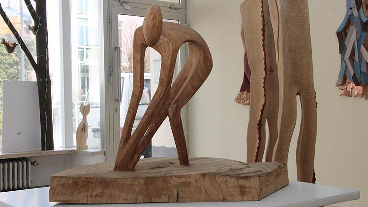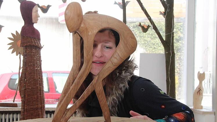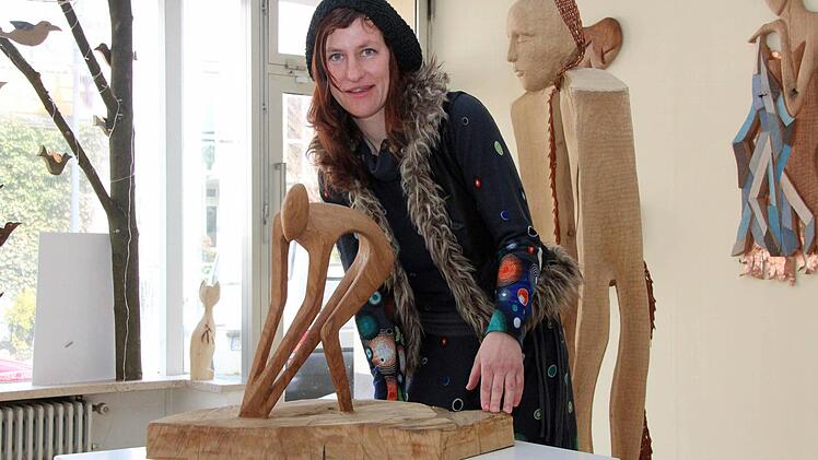 Viele Fragen, auf die sie wohl keine Antworten bekommen wird. "Ich bin glücklich, dass die Skulptur wieder unversehrt aufgetaucht ist und nichts anderes im Laden gestohlen oder gar zerstört wurde", sagt die Künstlerin. Genug Möglichkeiten hätten der Diebe gehabt. Große Holzfiguren, geflochtene Werke und Bilder auf Eichenholz sind im Ausstellungsraum zu sehen.