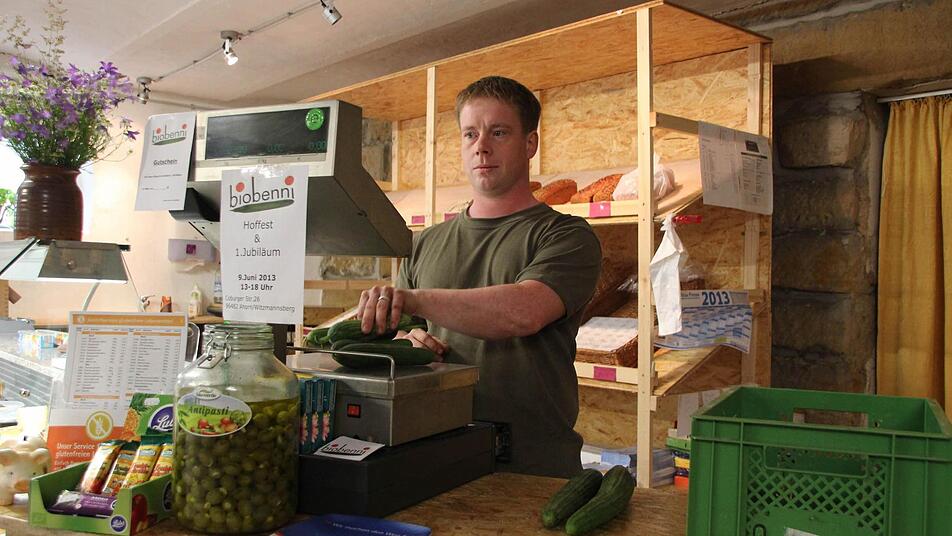 Wenn im Laden von Benjamin Hirsch Gurken, Paprika oder Tomaten ausgegangen sind, dann springt er in sein Auto und ist nach rund 20 Minuten mit frischer Ware wieder zurück. Kurze Wege, frisches Gemüse und alles Bio, dass ist das Konzept von "Biobenni", dem Dorfladen von Benjamin Hirsch, den er vor einem Jahr im Ahorner Ortsteil Witzmannsberg eröffnet hat.