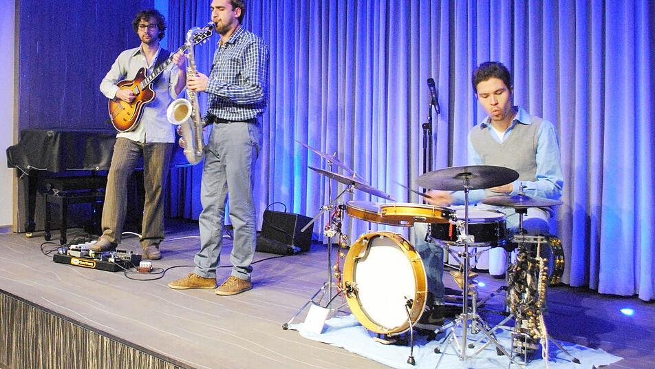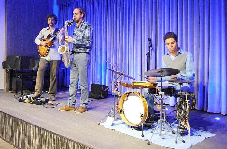 Drei Klangzauberer In diesem Sinne und Rahmen am Donnerstag also Le Café Bleu International, ein zweifelsohne herausragendes Jazztrio, das Bafas im renommierten Münchner Jazzclub Unterfahrt aufgefallen ist. Standen der Franzose Matthieu Bordenave (Tenorsax), der Deutsche Leonhard Kuhn (E-Gitarre) und der Amerikaner Jay Lateef (Percussion) letztes Jahr in der ersten Coburger Jazznacht noch etwas am Rande, so verführten, verzauberten die drei Buben jetzt ihr gut gemischtes Publikum aus Alt und Jung mit ihrer Aufbruchsfrische bei gleichzeitiger technischer Reife und emotionaler (Stil-)Sicherheit .
