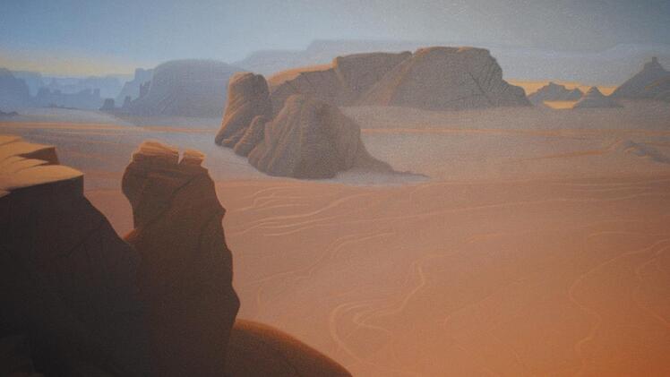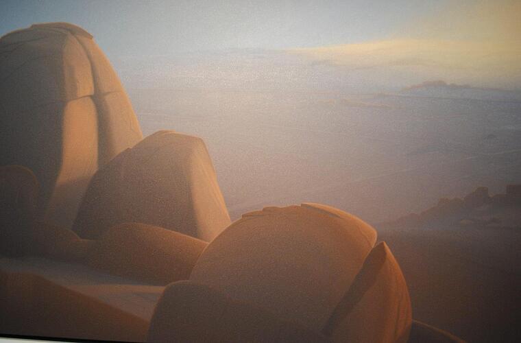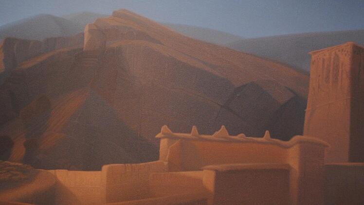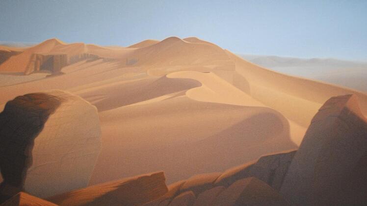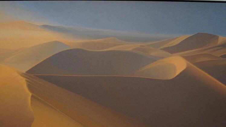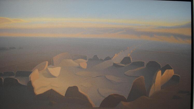 Der Wüste und ihrer stillen Unendlichkeit verfallen ist der Maler und Zeichner Hartmut Pfeuffer. Seine riesigen Bilder sind in Coburg zu erleben.