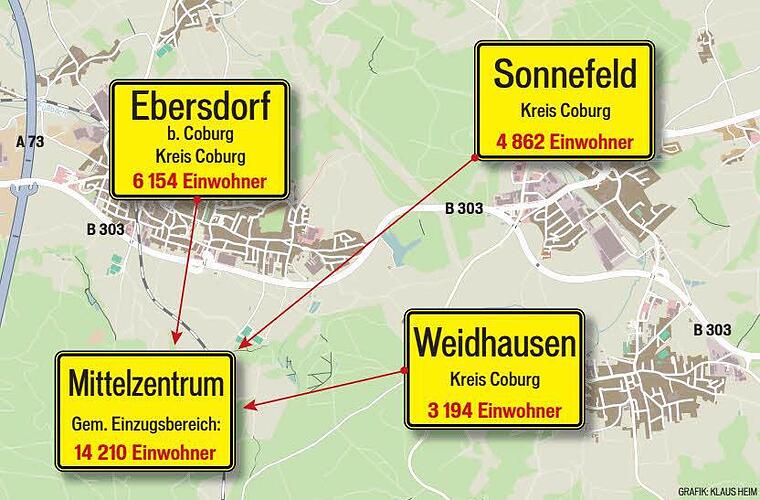 So ganz neu ist die Idee vom gemeinsamen Mittelzentrum ja nicht. In den 90-er Jahren gab es schon einmal einen Vorstoß in diese Richtung. Bernd Reisenweber kann sich daran erinnern: "Die Sache ist damals knapp gescheitert." Unter anderem der schwache Einzelhandelsumsatz in den drei Gemeinden wurde damals vom Freistaat Bayern als Grund herangeführt, dass die kommunale Achse an der B 303 nicht die Bedeutung eines Mittelzentrums erreichte. "Heute", sagt der Ebersdorfer Bürgermeister, "ist das anders" - und verweist auf die neuen Supermärkte, die in allen drei Gemeinden in den vergangenen Jahren entstanden sind.