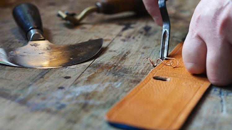 Der Weg in die Selbstständigkeit war der einzige richtige für den Täschner und Feinsattler. "Ich verdiene keine Reichtümer, aber wir kommen über die Runden", sagt er und streicht über die rotbraune Rindsledertasche. "Ich verwende bei meinen eigenen Designerprodukten nur vegetabil gegerbtes Leder. Da werden die Gerbstoffe ganz natürlich aus Eichenrinde gewonnen." Die robuste Tasche ist ein Stück fürs Leben.