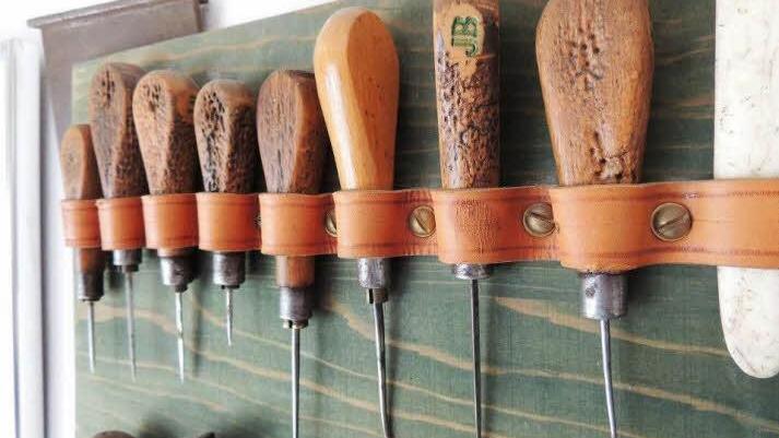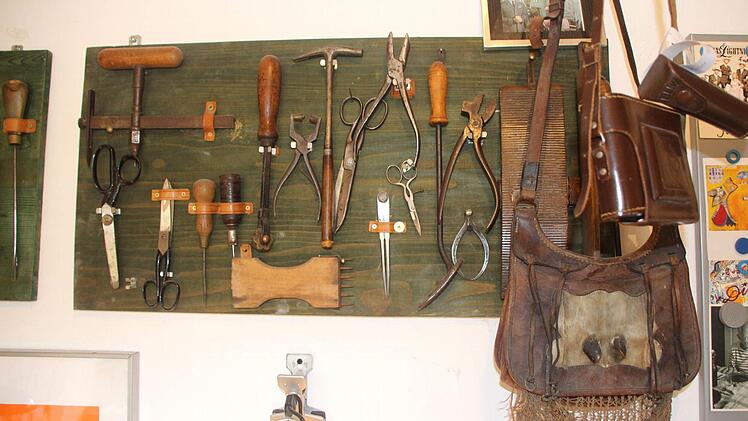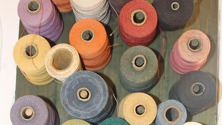 Schließlich muss Stich für Stich sitzen. Eine große Auswahl an Garnen, Leinen und Leder, die Werkzeuge aus vergangener Zeit und das Vogelgezwitscher aus dem Garten machen die etwa acht Quadratmeter kleine Werkstatt zu einem lebendigen Museum.